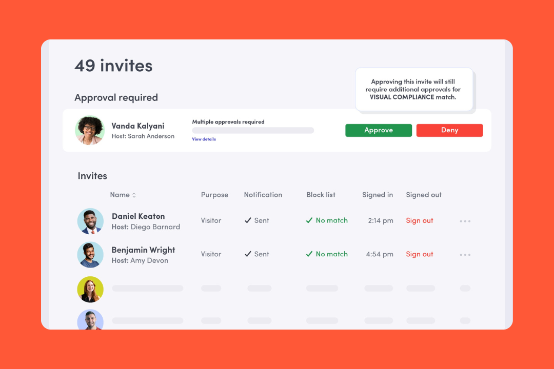- Hardened visitor flow: Beyond simple sign-ins, it handles legal NDAs and cross-referencing against watchlists.