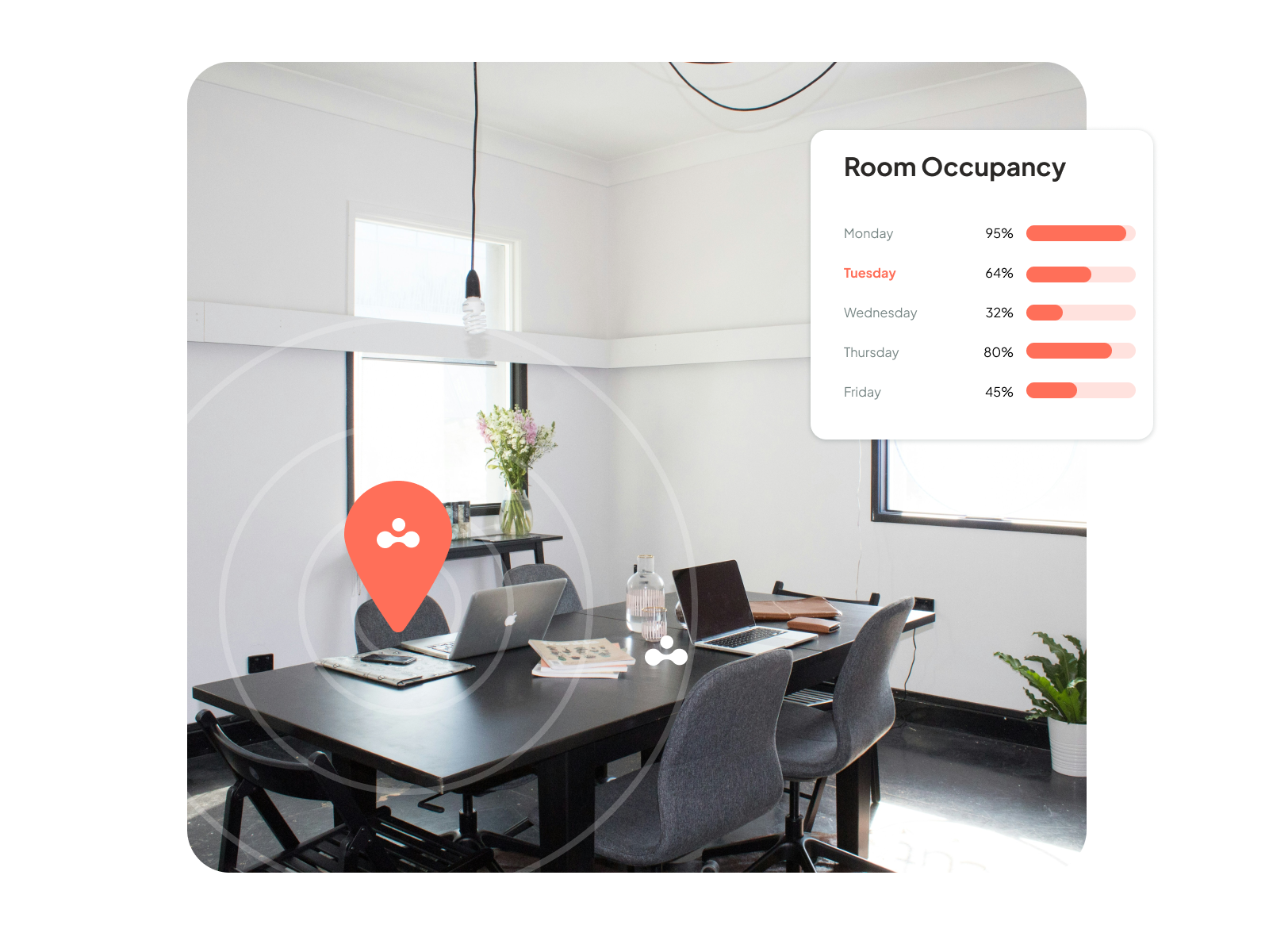 Sometimes a 12-person room gets booked for a two-person check-in. Technically, it’s occupied, but a big chunk of valuable space is being wasted. This kind of mismatch distorts demand across the office. Large rooms can seem busy, while smaller teams are left scrambling for the right space when they need one.